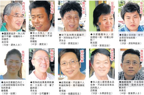 非常明顯的是,大家都對一幕幕爭執(zhí)鬧劇感到厭煩。黨爭的結(jié)果往往導(dǎo)致馬華和華社都成為輸家,所以民眾不要看“好戲”,而是要看到馬華領(lǐng)袖集中精神搞好國家和華社事務(wù)。