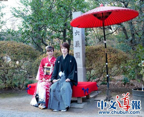 2010年2月7日,記者在日本舊古河庭院見(jiàn)到了這一對(duì)幸福的夫妻。他們已經(jīng)穿上婚紗和禮服,準(zhǔn)備拍攝婚紗照了。