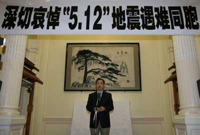 孔泉大使在默哀前簡(jiǎn)短講話中指出,駐法使館全體同志始終與災(zāi)區(qū)同胞和祖國(guó)人民同呼吸,在災(zāi)后次日即自發(fā)向?yàn)?zāi)區(qū)捐款超過(guò)13萬(wàn)元人民幣,同時(shí)全力在駐外工作崗位上協(xié)助國(guó)內(nèi)抗震救災(zāi)工作。使館同法政府部門(mén)、救援機(jī)構(gòu)保持密切聯(lián)系,通報(bào)災(zāi)情和舉國(guó)上下奮力抗災(zāi)的積極努力,向法方及時(shí)提供災(zāi)區(qū)急需的物資清單,法運(yùn)載首批80多噸帳篷、藥品等援助救災(zāi)物資的專(zhuān)機(jī)已飛抵四川。