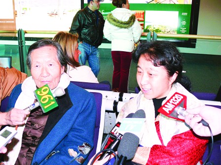 劉面換身穿傳統(tǒng)中式棉襖、藍(lán)色外套和白色圍巾出現(xiàn),雖然經(jīng)過(guò)十多小時(shí)的飛行,精神看起來(lái)仍然不錯(cuò)。前往接機(jī)的史維會(huì)共同主席列國(guó)遠(yuǎn),特別送上紅色大圍巾予以御寒。