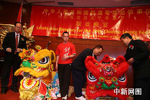 中新網(wǎng)溫哥華2月1日電 中國駐溫哥華總領(lǐng)事館今晚在此間華埠舉行盛大春節(jié)聯(lián)歡晚宴,北京奧運(yùn)和中國雪災(zāi)成為宴會(huì)二大熱議主題。