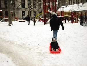 哥倫布公園內(nèi)積著厚雪,樹木上掛著沉甸甸的雪花,成了欣賞雪景的好地方。風(fēng)雪雖大,但還有一些民眾走進(jìn)公園,拍照留念;一些少年則更具活力,打雪仗,蕩秋千,玩得十分過癮。(云大為)