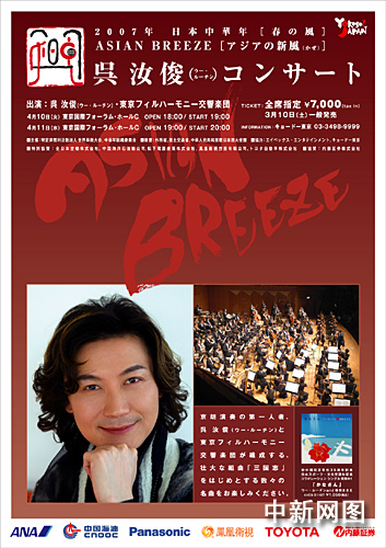 2007日本中華年“春之音”——吳汝俊音樂(lè)會(huì),將于4月10日在東京開(kāi)演。