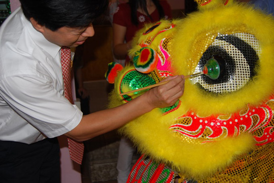 韓大使深情地回顧了新中國60年來在偉大的中國共產(chǎn)黨領導下,經(jīng)過全國人民艱苦卓絕努力所取得的輝煌成就,認為這是中國找到了一條符合本國國情發(fā)展的道路。說這些成就來自世界各地友好國家和人民的大力支持,當然也離不開包括斐濟華僑華人在內的廣大愛國僑胞的傾力相助,還特別對旅斐華僑華人一以貫之對祖籍國發(fā)展做出的貢獻表示感謝。會上,韓大使向西區(qū)華人社團贈送了使館資助款(支票 $5,000斐元),并代表國務院僑辦向西區(qū)華聯(lián)會、臺山同鄉(xiāng)會及勞托卡中華學校贈送了南獅及紅雙喜乒乓球臺,還向每個與會僑胞贈送了國僑辦剛剛運抵的慶祝建國六十周年紀念章,并興致勃勃地為新獅點睛。