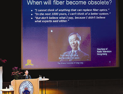 在總結(jié)演講時(shí),黃美蕓亦特別寄語(yǔ)世人:“以光纖為本的全球通訊網(wǎng)絡(luò)確實(shí)做到天涯若比鄰……然而訊息泛濫并不是一件好事……光纖通訊不僅是科技上的進(jìn)步,還為社會(huì)帶來(lái)了顯著變革;下一代人將會(huì)以不同的方式學(xué)習(xí)和成長(zhǎng)!