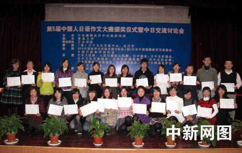 中新網(wǎng)12月12日電 由日本僑報(bào)社日中交流研究所主辦的第五屆中國(guó)人日語(yǔ)征文大賽頒獎(jiǎng)典禮暨獲獎(jiǎng)作品集《日本人對(duì)中國(guó)的貢獻(xiàn)》首發(fā)式,12月12日在山東青島大學(xué)隆重舉行。