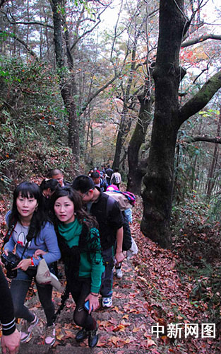 中新網(wǎng)溫州12月15日電 (記者 李飛云)入秋以來,中國著名僑鄉(xiāng)——浙江文成四周山嶺上的紅楓古道成為旅游的熱門場所,被北京大學教授謝凝高稱為“紅楓古道,江南少有。存之不易,堪稱佳景。”每到周末假日,就吸引滿山的游客訪古尋幽。