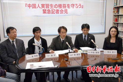 1月7日下午,10名在日中國(guó)實(shí)習(xí)生在《日本新華僑報(bào)》編輯部舉行了“維護(hù)中國(guó)實(shí)習(xí)生合法權(quán)益緊急記者會(huì)見(jiàn)”。日本共同社、時(shí)事通信社、《朝日新聞》、《每日新聞》、TBS電視臺(tái)等日本主流媒體都派記者前來(lái)采訪。同時(shí),中國(guó)中央電視臺(tái)、北京電視臺(tái)分別在1月5日和1月6日晚上對(duì)此事件進(jìn)行了報(bào)道。