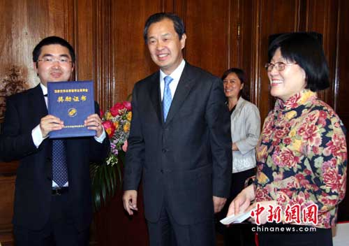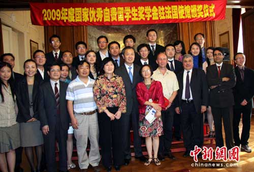 中新網(wǎng)巴黎6月4日電(記者 衛(wèi)中)2009年度中國優(yōu)秀自費留學(xué)生獎學(xué)金頒獎儀式4日下午在中國駐法國大使館舉行,20位留法學(xué)子獲得這一殊榮。