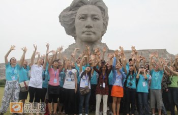 12日下午,54名來自世界各地的第九屆漢語橋世界大學(xué)生中文比賽的選手來到長沙著名的景點橘子洲,為第九屆漢語橋比賽拍攝宣傳片。