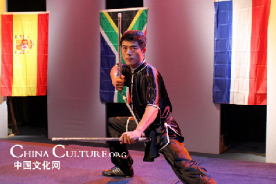 中國文化中心武術(shù)隊表演了南拳、長拳和三節(jié)棍等項目。他們在鏡頭前全神貫注、一絲不茍,最大程度地把自己所學(xué)完美地呈現(xiàn)給電視機前的觀眾。南拳套路短小精悍,結(jié)構(gòu)緊湊,手法多變,步法穩(wěn)健,并以聲助威,威猛迅疾,靈巧綿密,上肢及手型尤其富于變化;長拳套路姿勢舒展大方,動作靈活快速,剛?cè)岵,快慢相間,動靜結(jié)合,節(jié)奏分明,并帶有跳躍、跌撲和滾翻動作,非常精彩;而三節(jié)棍則是伸縮自如,三節(jié)相互轉(zhuǎn)換,方法多變,遠近兼顧,動作兇猛敏捷,氣勢逼人。棍法有劈、掃、掄、擊、戳、絞、格以及各種舞花,變幻無窮,令人驚嘆。這三個項目是文化中心的保留節(jié)目,深受武術(shù)學(xué)員們的喜愛。