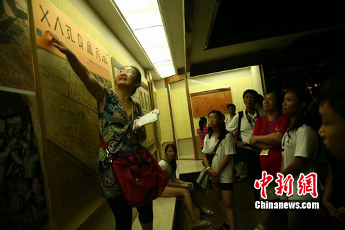 中新網(wǎng)廣漢8月3日電 (徐楊祎 張浪)3日下午,參加“2010中國尋根之旅”四川營的170多位海外華裔青少年,走進(jìn)位于四川廣漢的三星堆博物館,感受有3000多年歷史的古蜀文明。