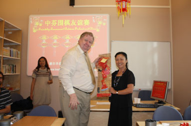 比賽共決出6位優(yōu)勝者,由孔子學(xué)院中方院長(zhǎng)李遠(yuǎn)征為獲獎(jiǎng)選手頒獎(jiǎng)——典雅的中國(guó)仕女竹掛簾和印有孔子學(xué)院字樣的購(gòu)物兜。在頒獎(jiǎng)儀式上,李遠(yuǎn)征盛贊此次圍棋比賽對(duì)促進(jìn)中芬友誼的意義,并希望芬蘭人民通過孔子學(xué)院的活動(dòng)和教學(xué)更多了解中國(guó)。