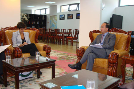 中新網(wǎng)9月28日電 據(jù)意大利歐聯(lián)通訊社報(bào)道,日前,中國駐意大利使館丁偉大使接受意大利當(dāng)?shù)孛襟w《信使報(bào)》記者博齊專訪,向意大利記者介紹了意大利中國文化年的籌備情況,以及文化年活動(dòng)的相關(guān)內(nèi)容。并應(yīng)詢記者的請(qǐng)求,就中國經(jīng)濟(jì)發(fā)展形勢(shì)、人權(quán)現(xiàn)狀以及中美關(guān)系做了介紹。