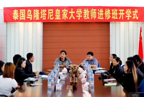 中新網(wǎng)10月11日電 據(jù)華僑大學(xué)華文學(xué)院網(wǎng)站消息,10月11日上午,泰國(guó)烏隆塔尼皇家大學(xué)教師團(tuán)開(kāi)學(xué)式在華僑大學(xué)華文學(xué)院一號(hào)樓會(huì)議室舉行。華文學(xué)院副院長(zhǎng)陳旋波、培訓(xùn)部主任李金鈔等出席了開(kāi)學(xué)式。