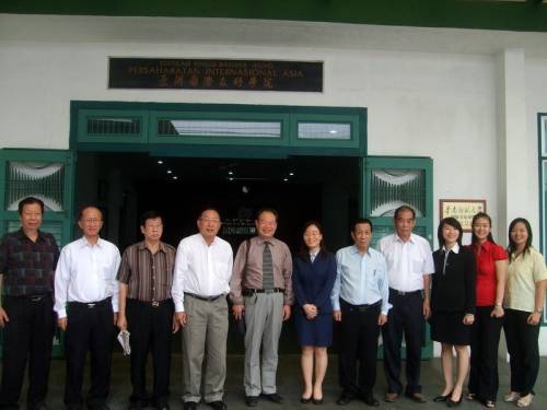 蘇北華聯(lián)副理事長(zhǎng)廖章然率隊(duì)陪同客人參觀了亞洲國(guó)際友好學(xué)院,介紹了該校的創(chuàng)辦過(guò)程及發(fā)展現(xiàn)狀,并先后參觀了學(xué)院圖書館、視聽室、遠(yuǎn)端教育室、畫展室、星洲大禮堂,就學(xué)院的長(zhǎng)遠(yuǎn)發(fā)展及設(shè)施建設(shè)交換了意見。之后,蘇振武又來(lái)到中國(guó)老師的宿舍樓,與中國(guó)老師進(jìn)行親切交談。