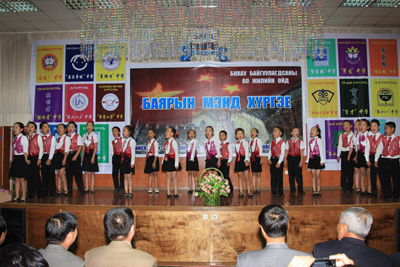 中新網(wǎng)9月27日電 據(jù)中國外交部網(wǎng)站消息,9月25日,為慶祝中華人民共和國成立60周年暨中蒙兩國建交60周年,蒙古首都教育局組織全市開設(shè)漢語教學課程的16所中小學校的師生,精心準備了一場有歌唱、舞蹈、柔術(shù)、器樂表演等多個節(jié)目的精彩演出。中國駐蒙古使館參贊王?档热w館員、蒙古首都教育局局長恩赫巴雅爾及上述各校校長觀看了演出。