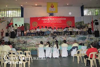 比賽正式開始了。半決賽采用的是分組答題的形式,13支代表隊(duì)通過回答30道題,決出了總分前5名參加決賽。決賽有兩道必答題,20道搶答題。題目內(nèi)容涵蓋了中國古代四大發(fā)明、四大名著、中國地理、中菲關(guān)系等歷史和時(shí)事題,同學(xué)們對中國知識的了解超乎想象,他們知道中國發(fā)明的地動(dòng)儀,知道孔子說過“三人行必有我?guī)煛,文天祥的“人生自古誰無死,留取丹心照汗青”,以至于中國的國徽圖案,新中國建國典禮等等。參賽的同學(xué)在臺上聚精會(huì)神地答題,每答對一題,臺下就爆發(fā)出雷鳴般的掌聲和歡呼聲。到?jīng)Q賽的搶答題時(shí),場上的氣氛達(dá)到了最高點(diǎn),同學(xué)們都站了起來,為他們的隊(duì)伍搖旗吶喊。經(jīng)過激烈的角逐,最后帕西格市立科技中學(xué)獲得了第一名。