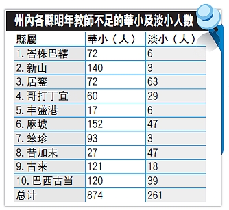 中新網(wǎng)12月4日電 據(jù)馬來西亞《星洲日報》報道,大馬柔佛州華小明年將嚴(yán)缺874名教師,淡米爾小學(xué)也面對缺乏261名教師的問題。