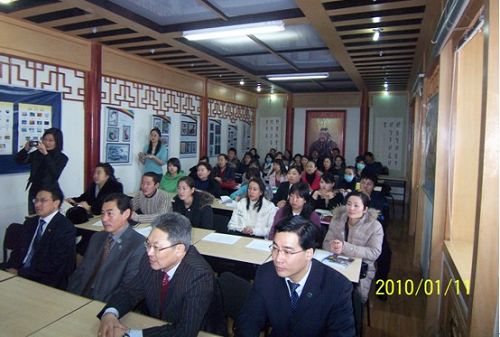 隨著蒙古國漢語教學的蓬勃發(fā)展,對本土漢語教師提出了更高要求。山東大學作為支持蒙古漢語教學的重點院校,在對蒙漢語師資培訓及教材建設等方面積累了豐富的經驗,形成了一套針對性強、科學合理的培訓方法。受國家漢辦委派,山東大學國際教育學院黃歷鴻副院長和黑琨副教授專程赴蒙承擔此次師資培訓任務,根據(jù)蒙古國漢語教師的實際需要,開設了“漢語閱讀教學”、“漢語口語教學”、“漢語寫作教學”、“漢語聽力教學”及“中國文化講座”等課程。授課主要采用案例分析、教學錄像觀摩、課堂討論和課堂設計相結合的方式進行,以達到提高本土漢語教師綜合執(zhí)教水平的目的。