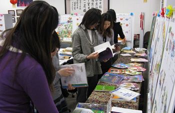 經(jīng)過立命館孔子學(xué)院的老師、活動(dòng)相關(guān)工作人員和志愿者的精心籌劃與布置,設(shè)立在立命館孔子學(xué)院教學(xué)樓內(nèi)的展廳煥然一新。展出的圖書既有漢語教材及中華文化類的圖書,也有音像類材料和漢語水平考試輔導(dǎo)用書。值得一提的是,本次教材展特別把兒童漢語類圖書作為一個(gè)重要主題,包括各類兒童漢語教材及漢語插圖本。本次書展的另一個(gè)亮點(diǎn)是多語種版的漢語教學(xué)有聲掛圖,精心挑選的21張掛圖懸掛在展廳內(nèi),是書展中最具科技含量的展品。