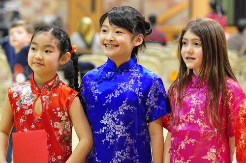 當天,金發(fā)兒童也和中國孩子一起穿上了中國旗袍,學校校長Ms.Ventola,教會主任牧師Father Sean和300多嘉賓一起參加了歡慶活動。