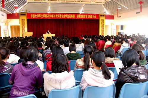 中新網(wǎng)3月12日電 據(jù)華僑大學(xué)網(wǎng)站消息,3月11日下午,華僑大學(xué)華文學(xué)院召開2010年對外漢語專業(yè)學(xué)生赴泰國、菲律賓教學(xué)實(shí)習(xí)動員大會。院長孫汝建、黨總支書記兼副院長趙明光與學(xué)院辦公室、教學(xué)辦、培訓(xùn)部、招生辦、學(xué)生辦等部門領(lǐng)導(dǎo),以及教學(xué)實(shí)習(xí)的帶隊老師和07、08、09級對外漢語專業(yè)的353名同學(xué)參加大會。