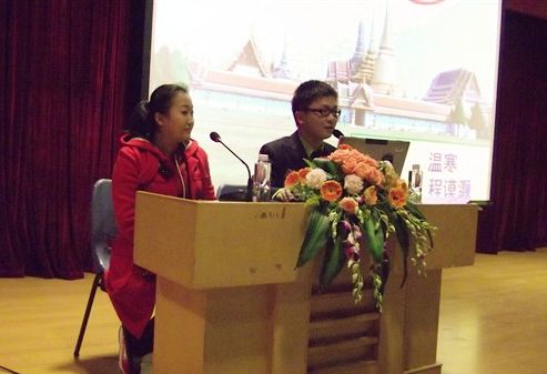 交流會上,兩位志愿者展示了自己在泰國工作生活的視頻,并講解了他們的志愿者經歷和教學經驗。詳實真切的報告帶給即將啟程前往泰國、菲律賓教學實習的對外漢語專業(yè)學生很大啟發(fā),同時也讓學弟學妹對志愿者工作有了新的認識和感悟。