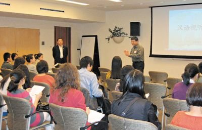中新網(wǎng)4月16日電 據(jù)美國《世界日報(bào)》報(bào)道,美國韋伯斯特大學(xué)孔子學(xué)院日前在該校愛莫森圖書館會(huì)議室舉辦第二屆漢語教師研修班。近50位圣路易地區(qū)漢語教師及漢語教學(xué)熱心人士參加培訓(xùn)會(huì)議。
