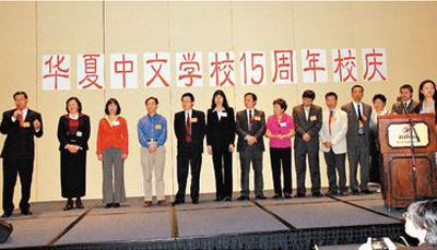 中新網(wǎng)5月4日電 據(jù)美國《世界日報(bào)》報(bào)道,為了慶祝建校15周年,美國華夏中文學(xué)校日前舉辦慶祝晚會,中國駐紐約總領(lǐng)館代總領(lǐng)事董曉軍、新州聯(lián)邦眾議員霍特等官員、社區(qū)名流、華夏部分往屆總校長、各分校校長、董事長和教師、學(xué)生代表200多人歡聚一堂,共同分享“華夏人”15年來的成果和喜悅。