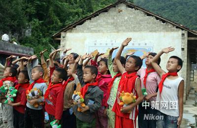 海爾小林希望小學(xué)的孩子們向國旗敬禮,表達(dá)他們對陳燮霞的祝福