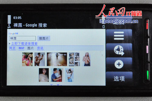 在搜索視頻內(nèi)容時(shí),輸入“激情 視頻”后,手機(jī)立刻顯示出許多帶有不堪入目圖片的鏈接,其中第一個(gè)便是名為“美女視頻美女艷舞”,谷歌在這次打擊手機(jī)色情行動(dòng)中的反應(yīng)可見一斑。