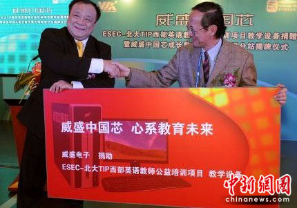 在捐贈儀式上,威盛宣布向北京大學繼續(xù)教育學院、文理應用學院ESEC教育機構TIP項目捐贈一批威盛Nano凌瓏處理器平臺電腦教學設備,這是威盛從2006年開始對該西部英語教師公益培訓項目的第三期捐贈。與此同時,威盛中國芯成長數字營云南分站也正式揭牌,從而將威盛中國芯成長數字營的分站數量增加到21個,基本覆蓋整個西部地區(qū)。