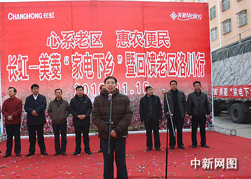 中新網(wǎng)1月18日電 1月16日,“長虹-美菱家電下鄉(xiāng)暨回饋老區(qū)洛川行”現(xiàn)場儀式活動在革命老區(qū)延安洛川縣舉行。陜西省財政廳、商務廳、陜西省消協(xié)及延安市、洛川縣有關領導出席了活動。