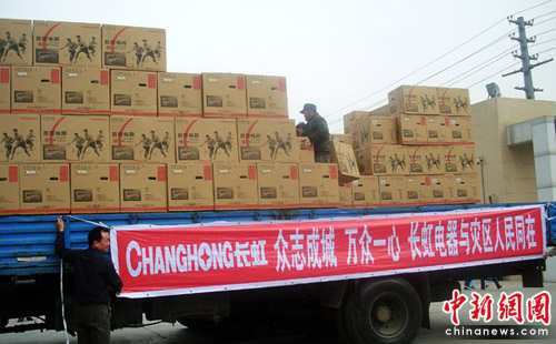 為幫助災(zāi)區(qū)做好信息的傳達(dá)和接收工作,長虹積極與青海廣播電視網(wǎng)絡(luò)中心、駐地部隊(duì)聯(lián)絡(luò),希望盡快將長虹電視迅速運(yùn)達(dá)災(zāi)區(qū)。