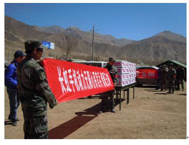 長(zhǎng)虹手機(jī)首批災(zāi)后重建物資抵達(dá)玉樹(shù)----捐贈(zèng)給成都軍區(qū)防化部隊(duì)手中