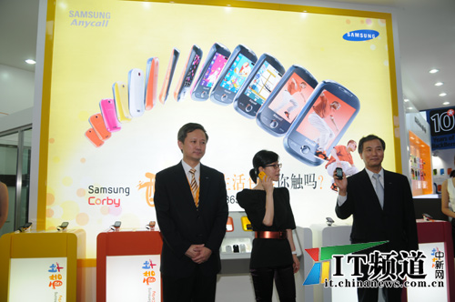 中新網(wǎng)9月17日電 2009年中國(guó)國(guó)際信息通信展覽會(huì)于9月16日在北京新會(huì)展拉開(kāi)了序幕。作為上升最快的全球第二大移動(dòng)通信終端制造商,三星電子在2009年中國(guó)國(guó)際信息通信展覽會(huì)上,全面展示了3G終端產(chǎn)品和技術(shù)的最新成果與趨勢(shì), 其中專為年輕消費(fèi)者量身打造的時(shí)尚觸控手機(jī)Corby — 酷畢S3650C(GSM)、F339(CDMA2000)也在本屆通信展上全球同步上市。
