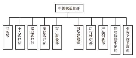 借電信重組契機(jī),中國聯(lián)通也對組織架構(gòu)進(jìn)行了調(diào)整。在重組之前,原中國聯(lián)通的前臺部門有G網(wǎng)經(jīng)營部、增值業(yè)務(wù)部、數(shù)據(jù)固定業(yè)務(wù)部等,原中國網(wǎng)通有增值業(yè)務(wù)中心、公話業(yè)務(wù)管理中心、綜合信息業(yè)務(wù)中心、區(qū)域銷售管理中心等;重組之后,中國聯(lián)通成立了個(gè)人客戶部、家庭客戶部、集團(tuán)客戶部,這些部門與市場部級別平行,具體如圖所示。