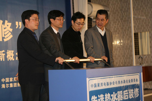 中新網(wǎng)3月8日電 日前,由中國(guó)家用電器協(xié)會(huì)電熱水器專業(yè)委員會(huì)主辦,專業(yè)委員會(huì)主任單位海爾熱水器公司承辦的“家裝新概念—先選熱水器后裝修”研討會(huì)在京舉辦,中國(guó)建筑裝飾協(xié)會(huì)、中國(guó)房地產(chǎn)協(xié)會(huì)以及阿里斯頓、美的、帥康、萬和、萬家樂、西門子、康泉等熱水器廠商參與了協(xié)辦。三大協(xié)會(huì)和八大熱水器生產(chǎn)企業(yè)針對(duì)大部分消費(fèi)者存在先裝修后選熱水器的習(xí)慣而帶來的用戶滿意度不高,共同倡導(dǎo)“先選熱水器后裝修”的消費(fèi)理念。旨在提高熱水器產(chǎn)品的用戶滿意度,為更多的消費(fèi)者提供舒適、安全、經(jīng)濟(jì)、健康、環(huán)保的洗浴環(huán)境。