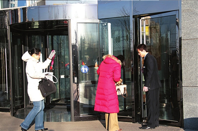昨天上午,在索愛(ài)公司大樓前,一名安保人員守在門口,禁止他人進(jìn)入。在大廳內(nèi),30多名身穿黃色索愛(ài)公司銷售服的人,舉著“還我們權(quán)益”的條幅討薪。