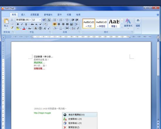 據(jù)臺(tái)媒報(bào)道,上班族用MSN或即時(shí)通聊天,最怕老板或主管在身邊走來(lái)走去,臺(tái)灣工程師編寫(xiě)的共享程式“Just Chat”最近在網(wǎng)絡(luò)上爆紅,安裝這套軟件后,用MSN聊天,電腦螢?zāi)豢雌饋?lái)像是認(rèn)真打文件、作報(bào)表。