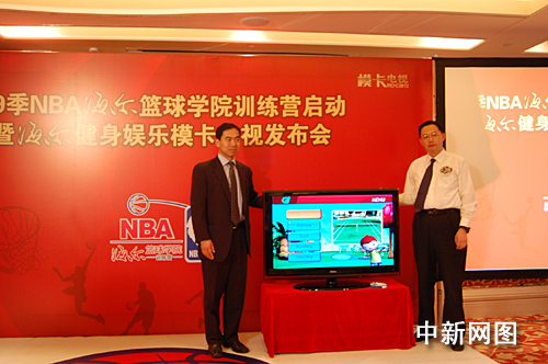 秉承NBA的體育及娛樂精神,在此次啟動儀式上,作為NBA官方指定使用電視產(chǎn)品——海爾彩電推出了健身娛樂?娨,并發(fā)布了“云媒體”戰(zhàn)略。海爾集團信息產(chǎn)品本部總工程師翟翌立博士介紹,海爾推出“健身娛樂?ā彪娨曋荚谧尭嗟娜俗悴怀鰬艟涂梢钥鞓方∩聿Ⅲw會NBA精神。同時,隨著網(wǎng)絡(luò)時代的來臨,針對不同使用習(xí)慣用戶的需求,海爾彩電推出了“搜狐在線網(wǎng)絡(luò)?ā焙汀把咐紫螺d網(wǎng)絡(luò)?ā保沟萌藗兛梢栽诩彝ㄟ^電視一鍵上網(wǎng)看高清大片,還將聯(lián)合更多的網(wǎng)絡(luò)內(nèi)容提供商,讓用戶無需擔(dān)心個人儲存設(shè)備空間的限制,可以隨時、無限量地自由選擇自己所需要的網(wǎng)絡(luò)內(nèi)容資源。