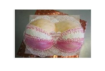 什么是胸光無限蛋糕?顧名思義,它的整體就形似一個戴有粉色花邊比基尼的女性胸部,比基尼之下覆蓋著一層草莓醬,如果你很猥瑣地揭開它,一定會很失望,里面鋪著核桃、果仁等豐富的餡料,可別想歪了!蛋糕的中間還用糖果鑲有對戀人的告白,一看這款蛋糕針對的消費群體就是那些處于愛河中的男女們。