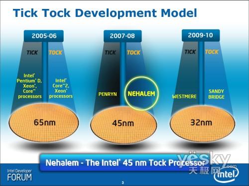根據(jù)Intel處理器Tick Tock的發(fā)展節(jié)奏:每兩年更新一代微架構(gòu)、每兩年更新一代硅芯片生產(chǎn)工藝、微架構(gòu)和硅芯片工藝更新交替進(jìn)行,08年是偶數(shù)年,是到了更新微架構(gòu)的年份,新的Nehalem微體系架構(gòu)已于去年10月來到了廣大消費(fèi)者的面前。