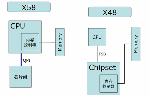 以上是Intel X58和Intel X48芯片組之間的規(guī)格對(duì)比列表。由以上列表我們可以看到,Intel X58芯片組相對(duì)X48芯片組來說,有許多方面的改進(jìn),北橋方面:Intel X58芯片組支持最新的LGA1366 Core i7系列處理器,而Intel X48芯片組支持上一代的LGA775 Core 2系列處理器;此外由于Intel Core i7系列處理器采用了新的QPI(Quick Path Interconnect)總線設(shè)計(jì),QPI的每一個(gè)鏈接均為全雙工,提供6.4GT/s的帶寬,而每一個(gè)2-byte寬度的鏈接每個(gè)方向可以得到12.8GB的帶寬,從而使得一個(gè)單一的QPI鏈接就能夠提供25.6GB/s的帶寬,是LGA775平臺(tái)架構(gòu)的2倍。