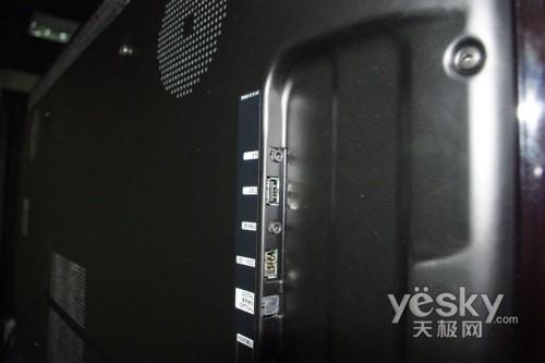 這一系列的電視接口設(shè)置相當(dāng)強(qiáng)大,側(cè)面提供了兩組USB接口和四組HDMI接口,機(jī)身下部提供了一個(gè)LAN網(wǎng)口,有線、無(wú)線電視信號(hào)接口各一個(gè),而AV接口和色差分量接口由于機(jī)身位置有限都采用了一轉(zhuǎn)多的接口,從圖片中的可以直觀的看到。