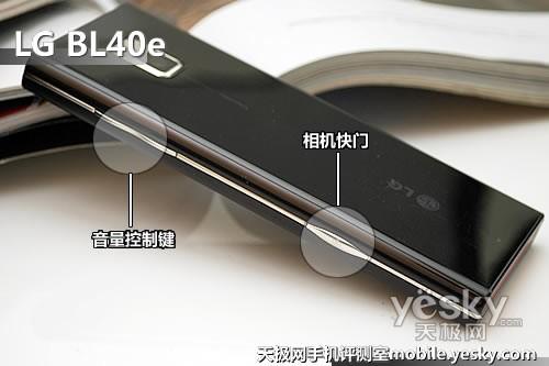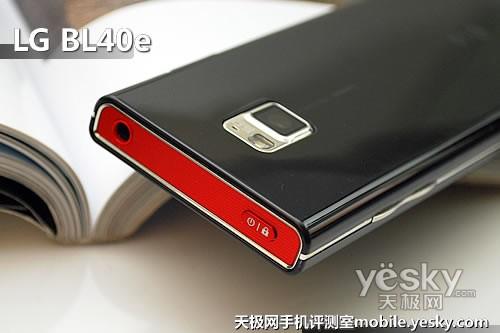 LG BL40e機(jī)身四周采用無縫式設(shè)計,機(jī)身做工精細(xì),各部分銜接緊密。機(jī)身頂端分別設(shè)計了3.5mm耳機(jī)接口與電源開關(guān)/屏幕鎖,點擊一次電源開關(guān),即可鎖閉屏幕。