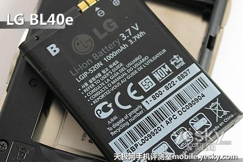 LG BL40e標配一塊1000毫安的鋰離子電池,對于一個擁有4.0英寸1600萬色屏幕的手機來說,確實還不能算是強勁,而在實測中頻繁使用,一天多的時間就需要充電了,建議再為手機配置一塊電池,來滿足對于長時間待機的需要。