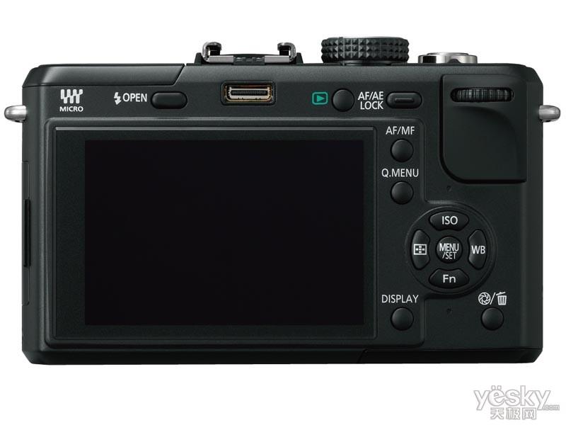 該機(jī)背后是一塊3英寸LCD,其顯示精度也要高于E-P1,約具有46萬像素(E-P1的LCD為23萬像素)。GF1的三圍尺寸和E-P1區(qū)別不大(119×36.3×71mm),但重量卻比E-P1輕了50g,只有285g。另外,GF1的電池型號(hào)是與G1及GH1相同的DMW-BLB13型。