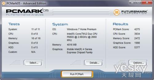 PCMark05 是考察筆記本綜合性能的測試軟件,在測試中我們采用了集顯模式,測試總成績?nèi)匀辉?000分以上,其中處理器和硬盤部分表現(xiàn)出色,內(nèi)存和顯示部分一定程度拉低了總成績,不過在獨(dú)顯模式下,分?jǐn)?shù)會有較大程度提升。